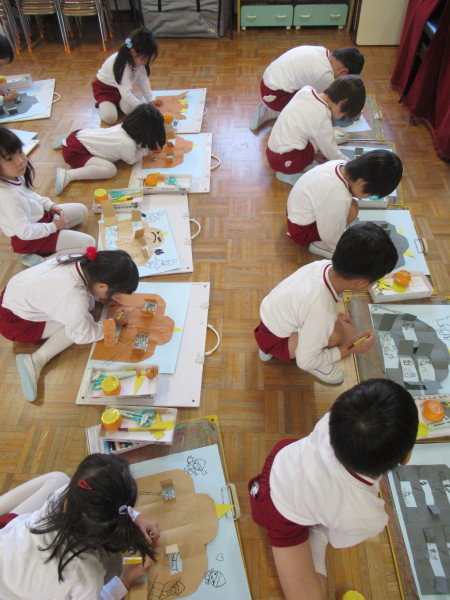 「こんなのどうかな?」「こんな文章だから、絵はこれにしたよ!」と、お友だちと話をしながら作り進めていく姿が見られました!