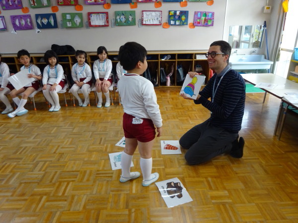 次は、絵カードを見て英語で発音したり、絵を真似して大きく身体を動かしたりしました♪♪