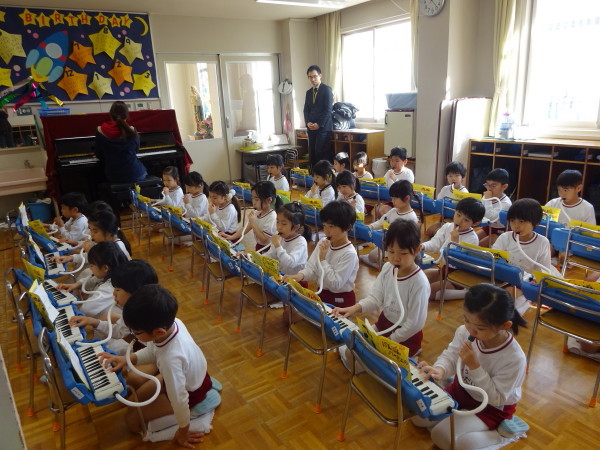 英語と音楽の合間には、鍵盤ハーモニカで“ゆかいな牧場”を演奏しました。