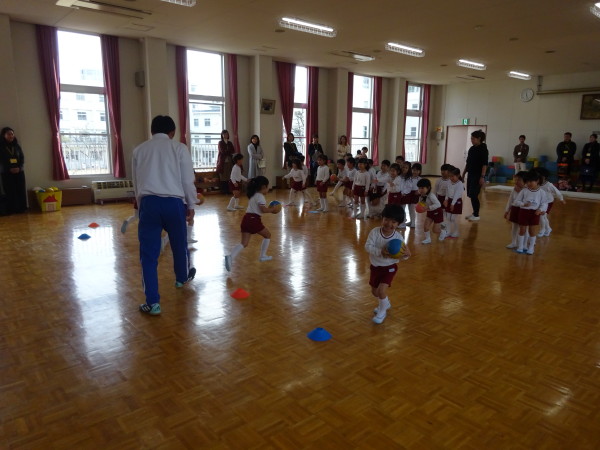 「持って走る、転がす、投げる」の動作を行いました!