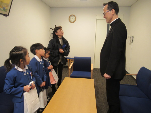代表の子どもたちが到着すると、お部屋を用意してくださっていて、神父様がいらしてくださいました。