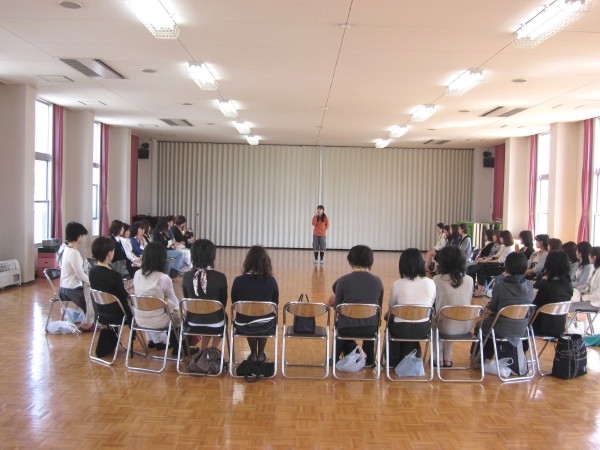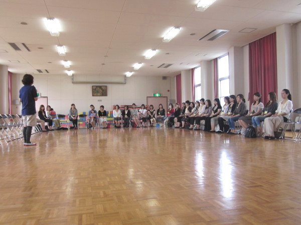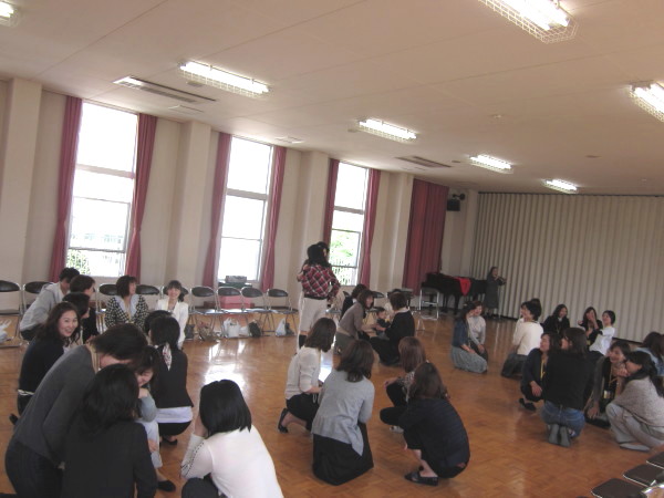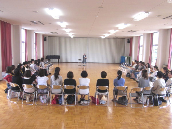 今日は、遊戯室に年長組のお母様方が集まって、「母の集い」が行われました。