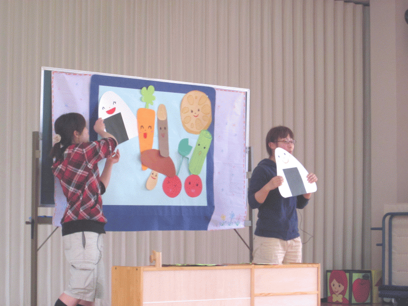 今回取り上げた手遊びは、各クラス、子ども達が楽しんでいるものばかりを一緒に楽しんでみました。