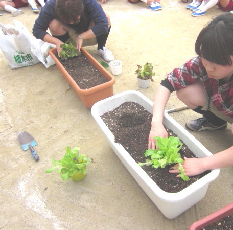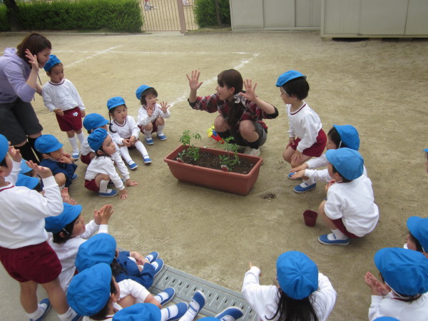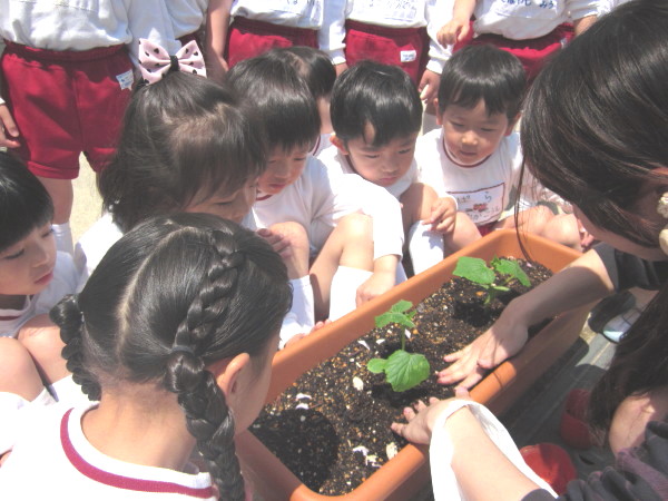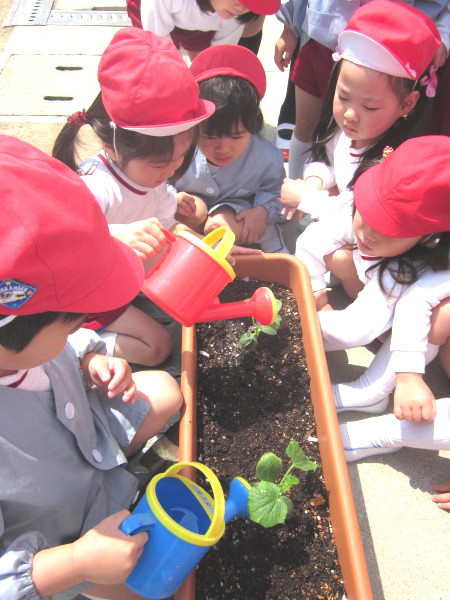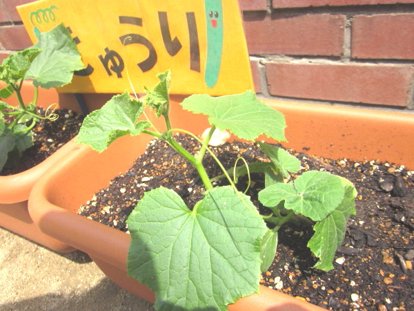ばら組とさくら組は、きゅうりの苗植えをしました☆