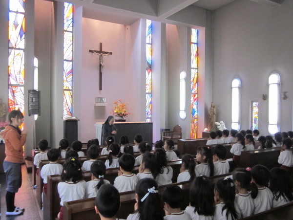 聖堂では、園長先生から神様のお話をいただきました。