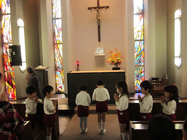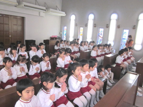 幼稚園を卒園しても、この一年間の聖堂でのお話を思い出して、素直で優しいひかりの子でいてほしいと願っています。