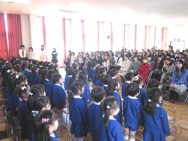恥ずかしさで少しどきどきした様子で、修了式に参加していました。