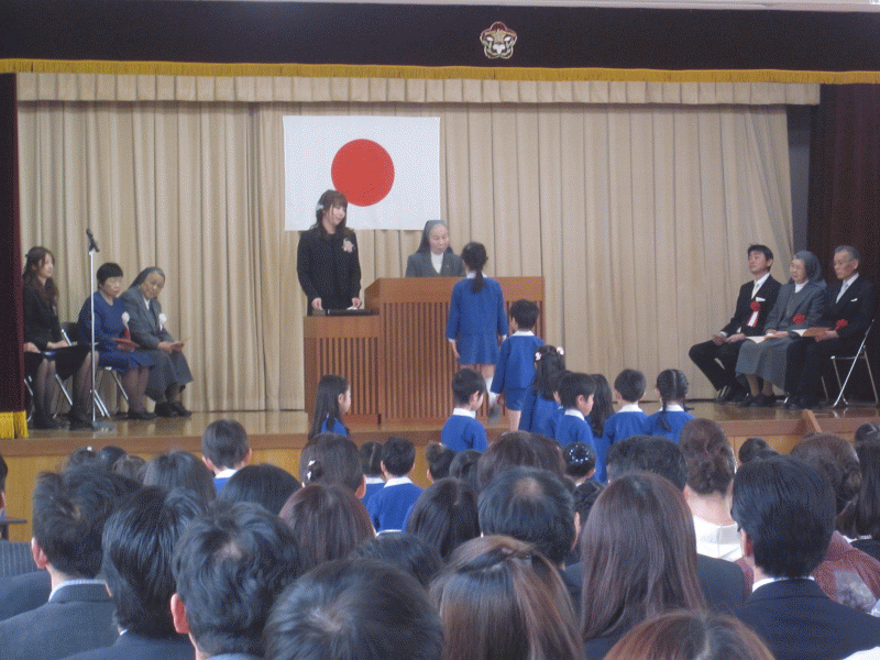 舞台の上には、来賓の方と、幼稚園の先生たちが着席し、入園式が始まりました。