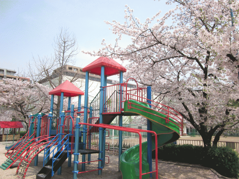 園庭の遊具が、「いっぱい遊びたいなぁ〜!」と待っています。