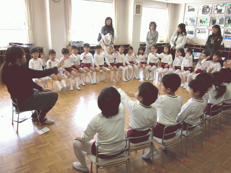 年長組の園開放1日目は、英語のキャシー先生と音楽の後藤先生と