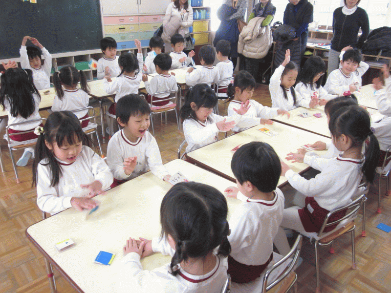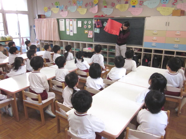 はじめに、先生から節分のお話を聞きながら、