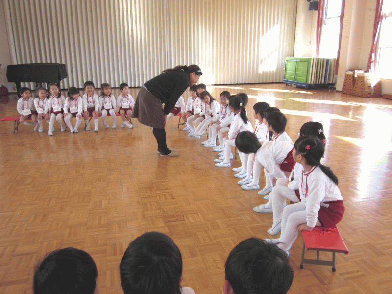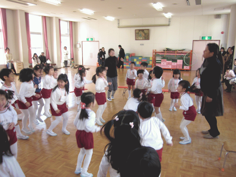 先生と一緒に、ジャンプをしたり、手を叩いたり、