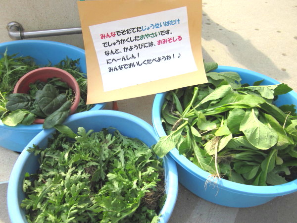 年長組さん達の収穫した野菜が出揃いました!!
