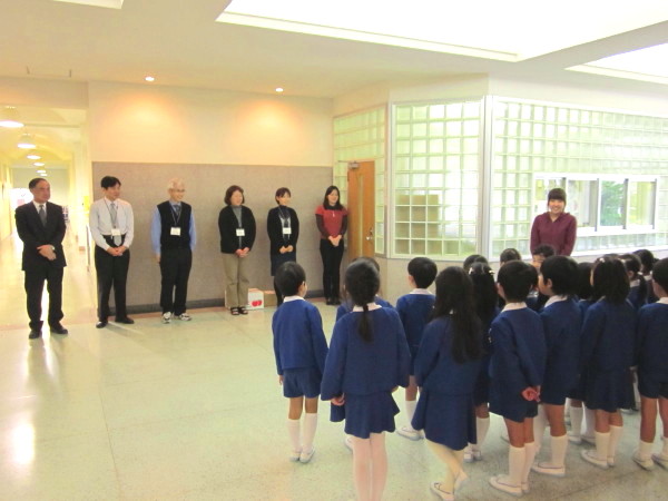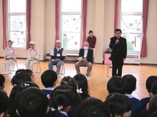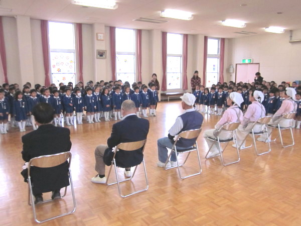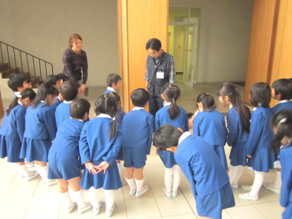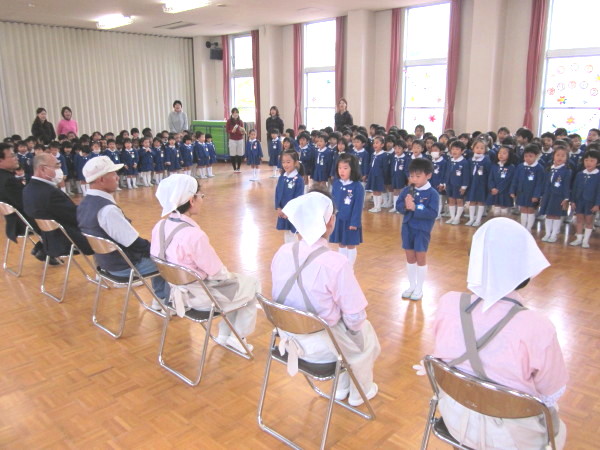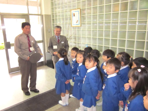 年長組の子どもたちが、幼稚園みんなの代表として、お礼を言いに行きました。