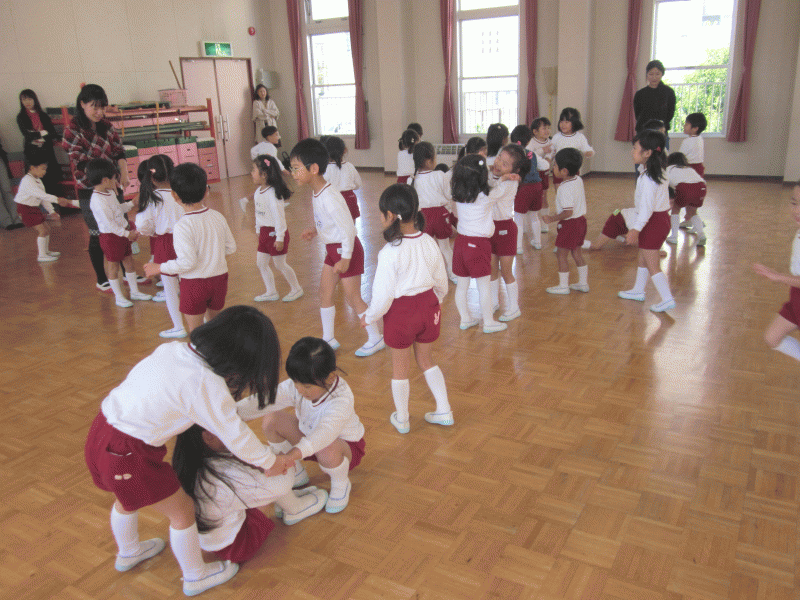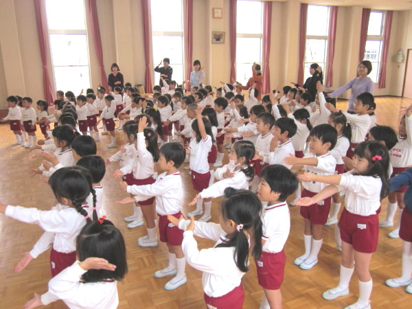 お話を聞いた後は、ピーターパン体操をして体を十分に