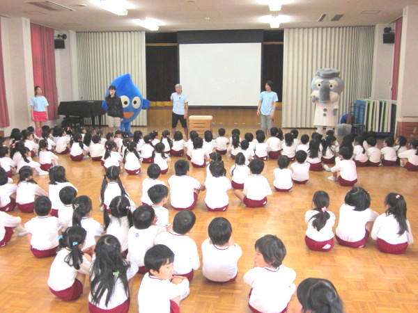今日は幼稚園に、大阪市水道局の方が来て、