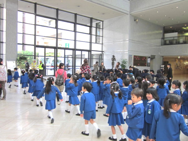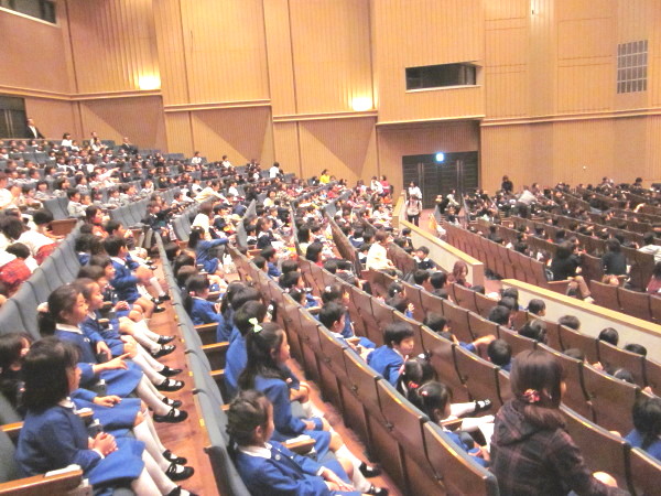会場は、上本町の『大阪国際交流センター』というところです。みんなで、園バスに乗って行きました。他にも沢山の幼稚園や保育園からお友達が来ていましたよ。