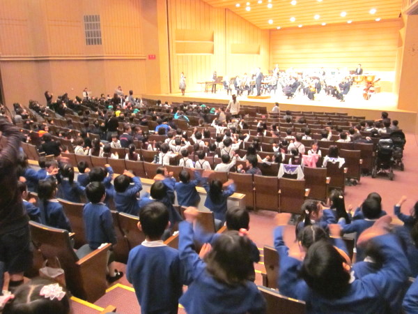 今日は、年長組の音楽鑑賞会の日です。クリスマス会までの少し落ち着いたこの時期に、直に本格的なオーケストラの音楽に触れるという貴重な体験ができました。
