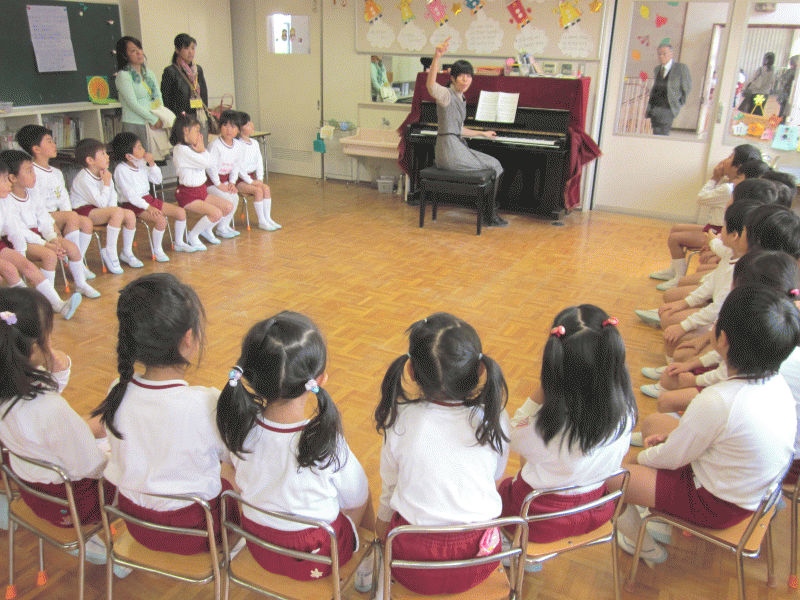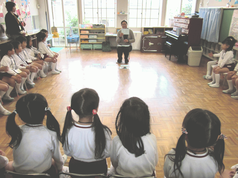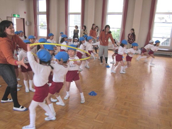 今日の1日目の園開放は、英語の先生・音楽の先生と一緒の活動と共に、