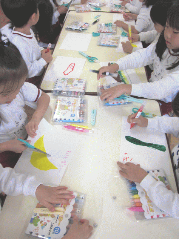 明日の絵合わせゲームで使うカードを、クラスごとに