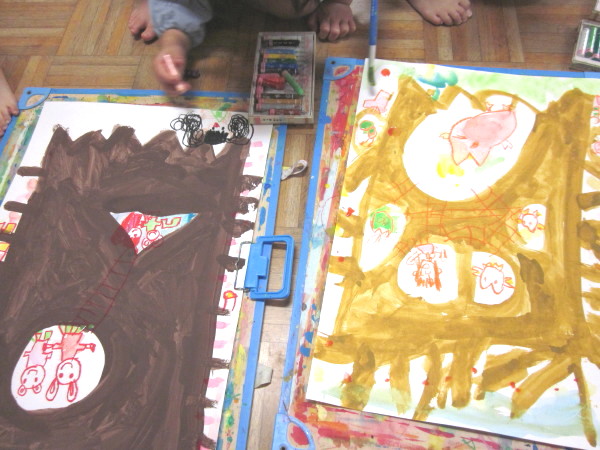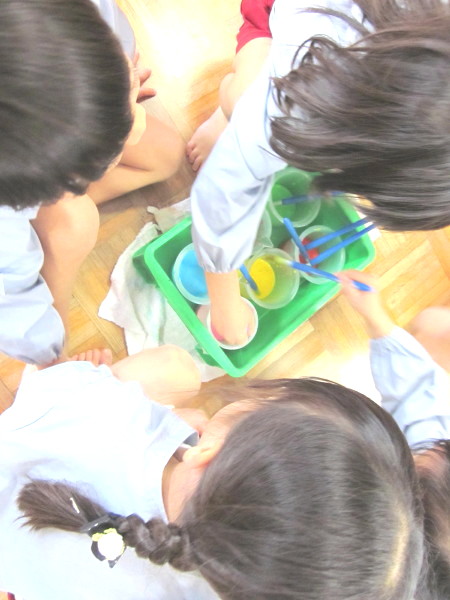 年中組は絵の具遊びをしました♪