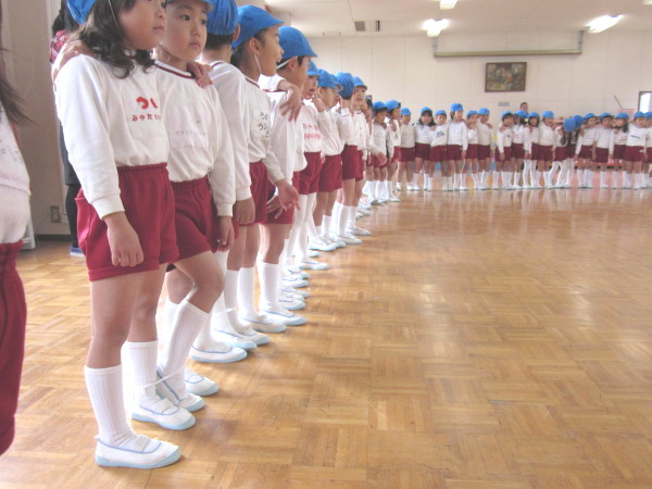 スモックを着て、上靴と靴下を脱いで・・・