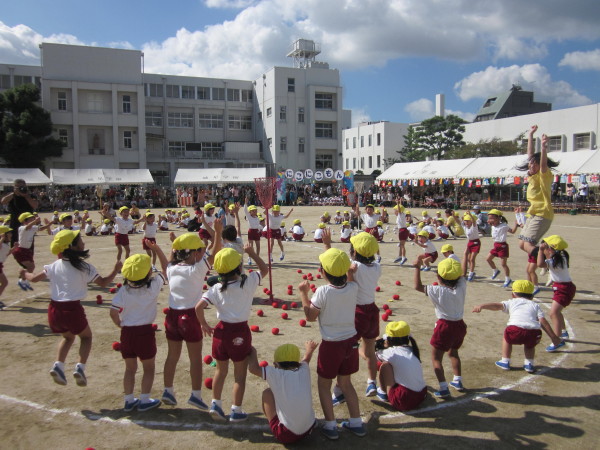 赤・白・黄色の玉が、青空に沢山とんでいましたね!