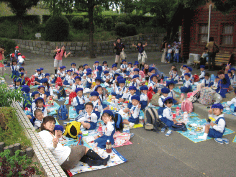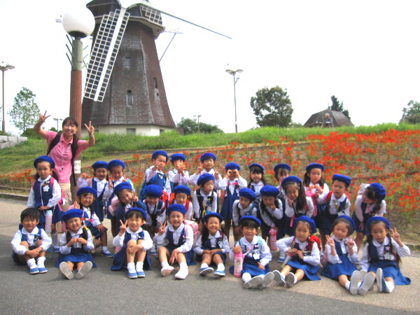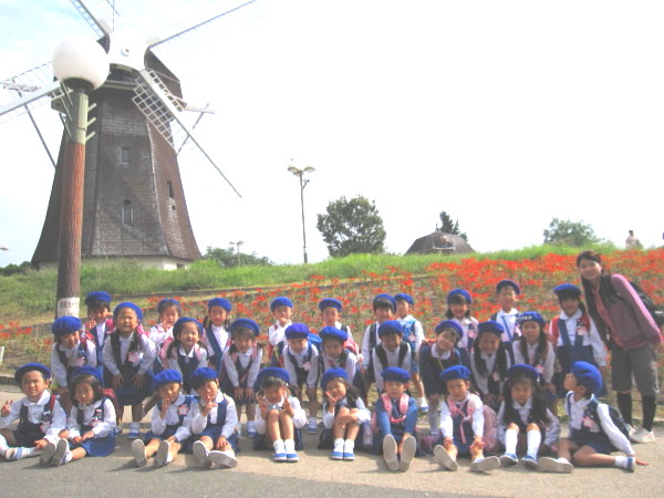 年長組のもも組・うめ組と、年中組のばら組・ゆり組・さくら組!
