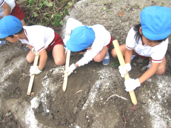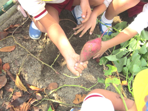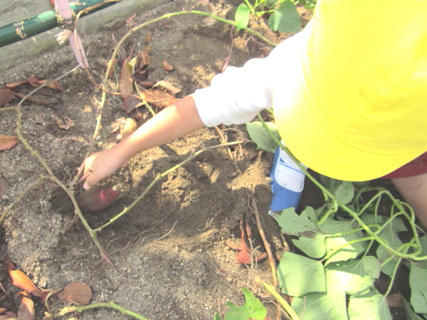 「お芋が手についたぁ、これ食べたいなぁ〜」