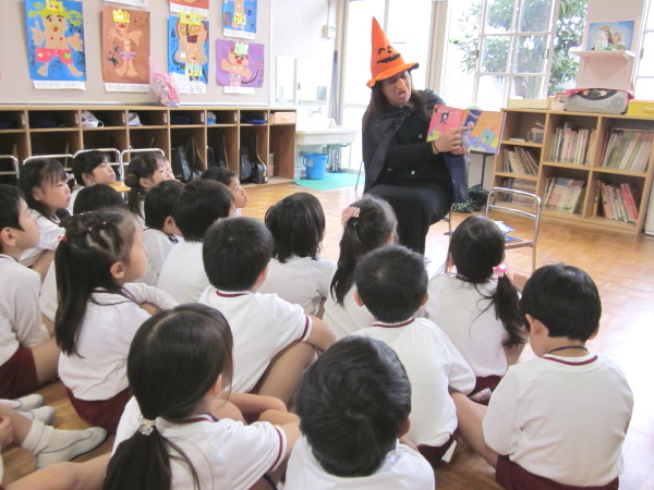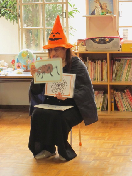 毎回キャシー先生が、ハロウィンの魔女の扮装で
