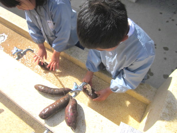 お芋の土を落とします。