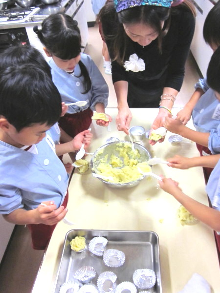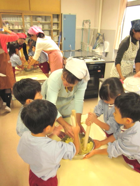 最後に、朝早くから大量(約24kg)のお芋と格闘し、子ども達のスイートポテト作りにご協力下さった係のお母様方、どうもお疲れさまでした!