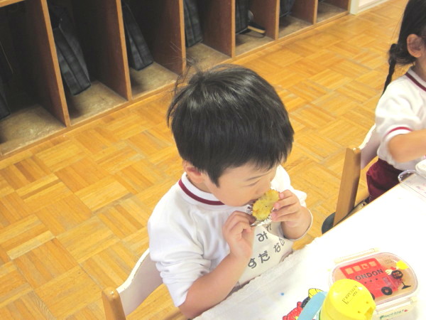 夢中でお芋をほうばるお友だち(*^。^*)