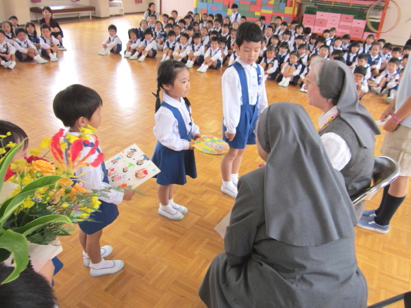 幼稚園にシスターをお迎えして、ささやかではありましたが歓迎会を行いました。