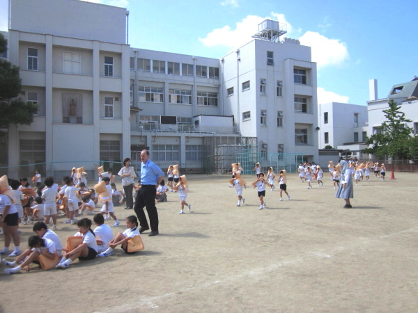 一斉にグランドへ向かって出ていく子ども達。
