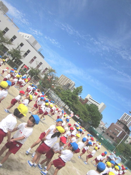 秋晴れの気持ちいい空の下、運動会リハーサルが行われました。