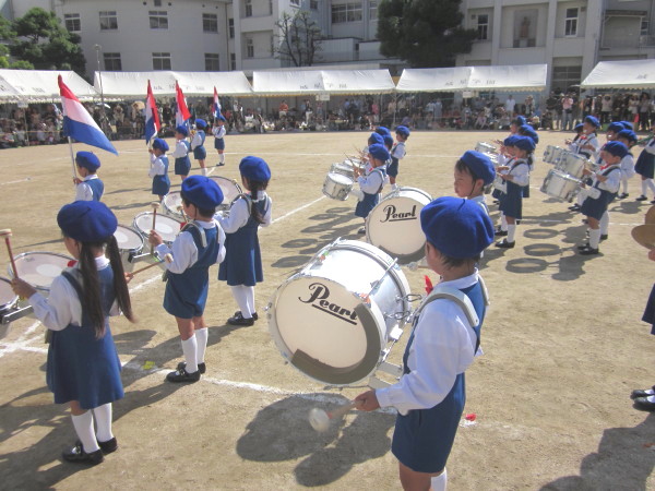 午後のトップバッターは、年長組による鼓笛隊です。