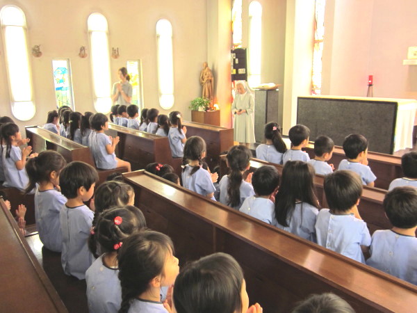 そして、2学期も沢山のお恵みで元気いっぱいに過ごせるよう、みんなで心を込めてお祈りをしました。