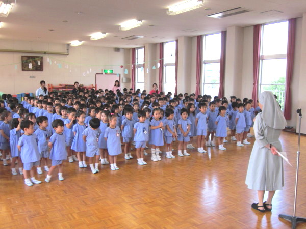 『夏休み中には楽しい事ばかりではなく辛い事もたくさんあるけれど、それを糧にして、心に優しさや思いやりの「貯金」をして、新学期に周りのお友だちに分けてあげられる様にしましょう』とお話がありました。