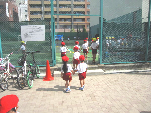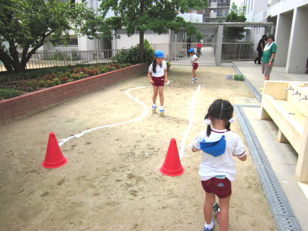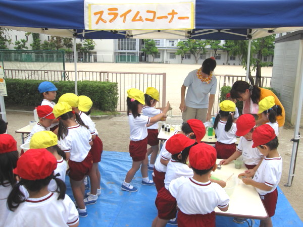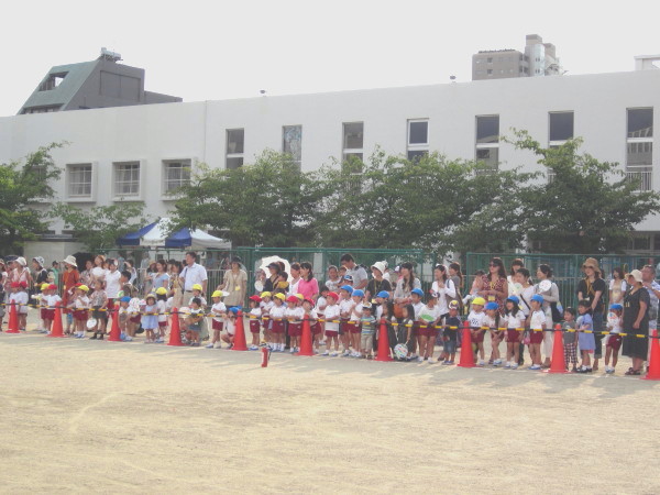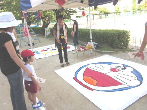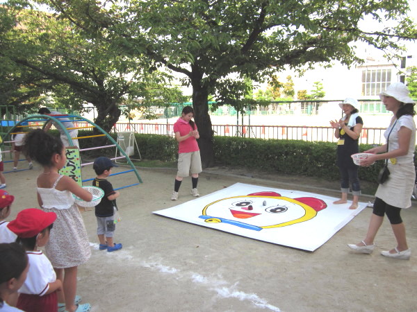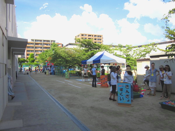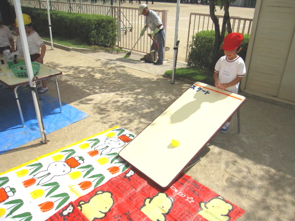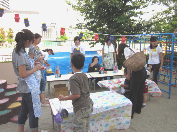 午後から、役員のお母様が準備のために集まってお手伝いして下さいました。3時を過ぎると、園庭にも影ができて、少しは涼しくなりました。