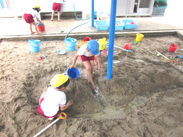 夏期保育2日目です。相変わらずのカンカン太陽の下、元気いっぱいの子ども達。