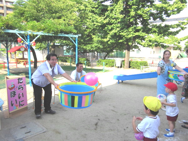 本日参加のほとんどの子ども達が、水風船投げを満喫しました。