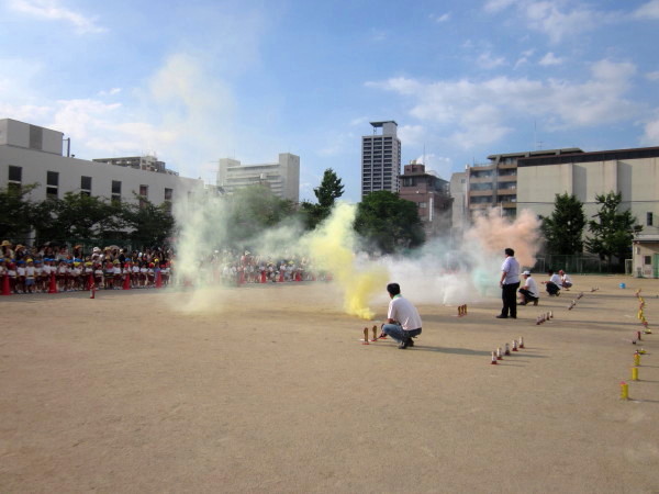 ドーン!!とカラフルな煙をあげて、花火の始まりです。