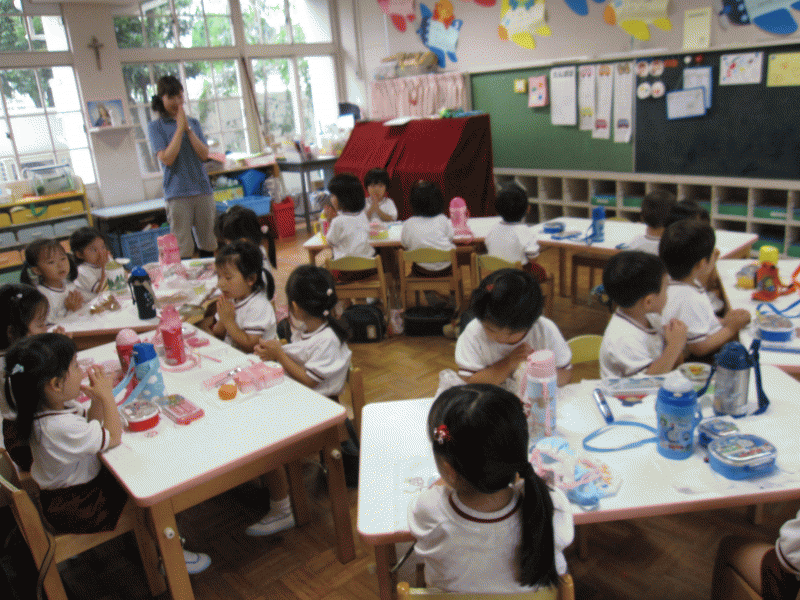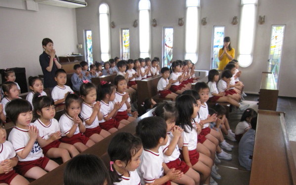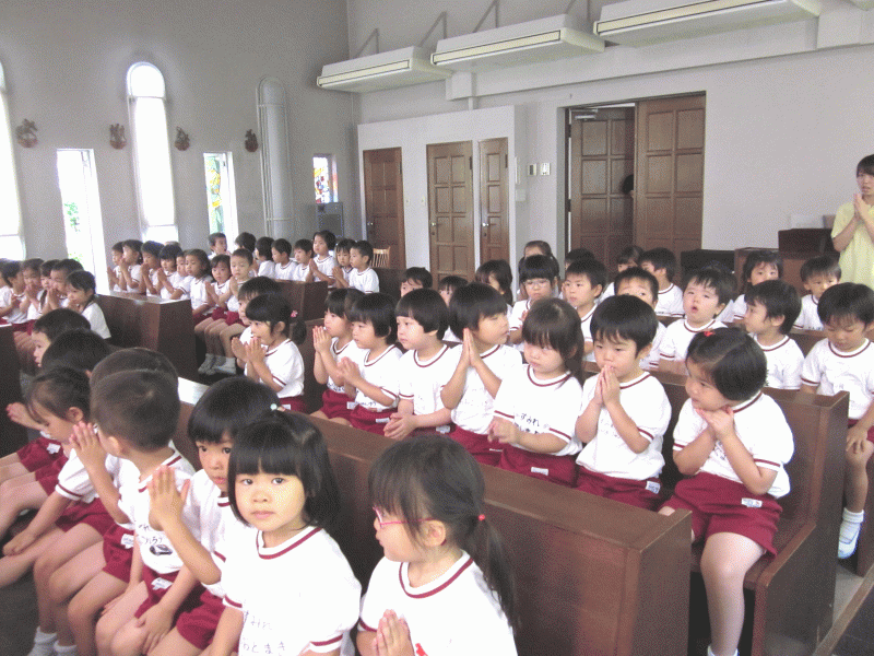 聖歌「神様といつもいっしょ」を歌い、神様に祈りを捧げます。