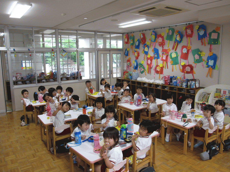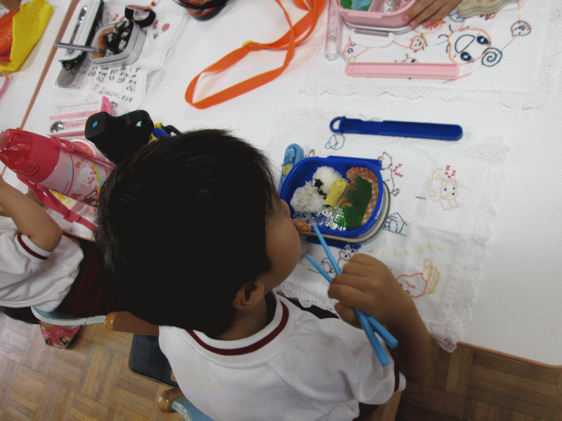 お友だちとお話をしながら、楽しそうに食べています。