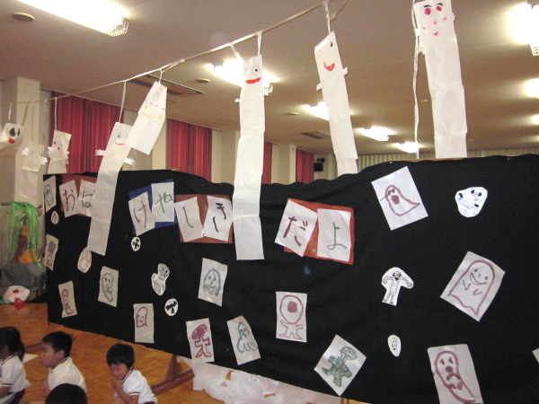 おばけやしきは、今日で終わりましたが、一部、遊戯室にて展示しております。