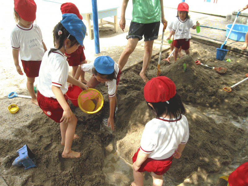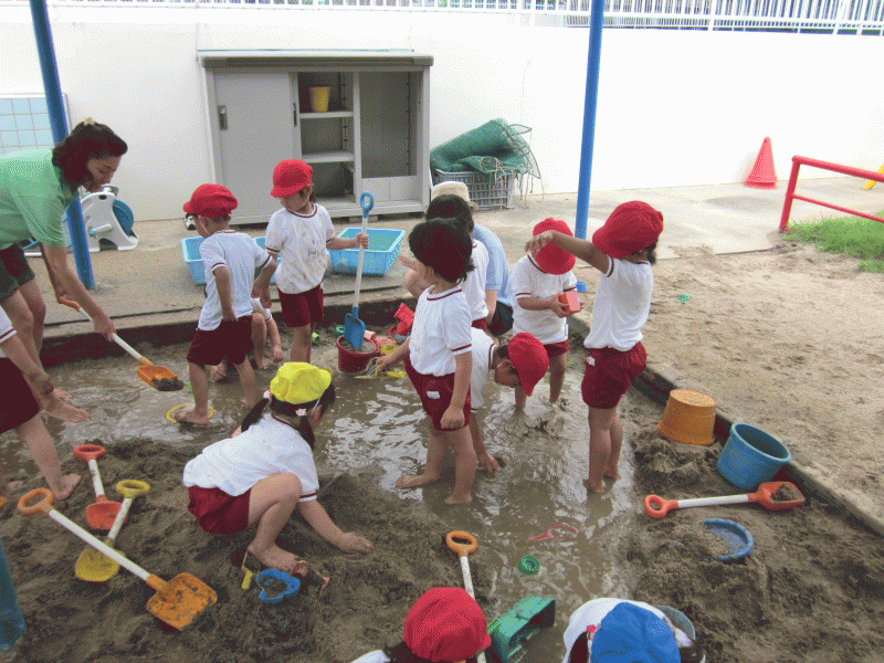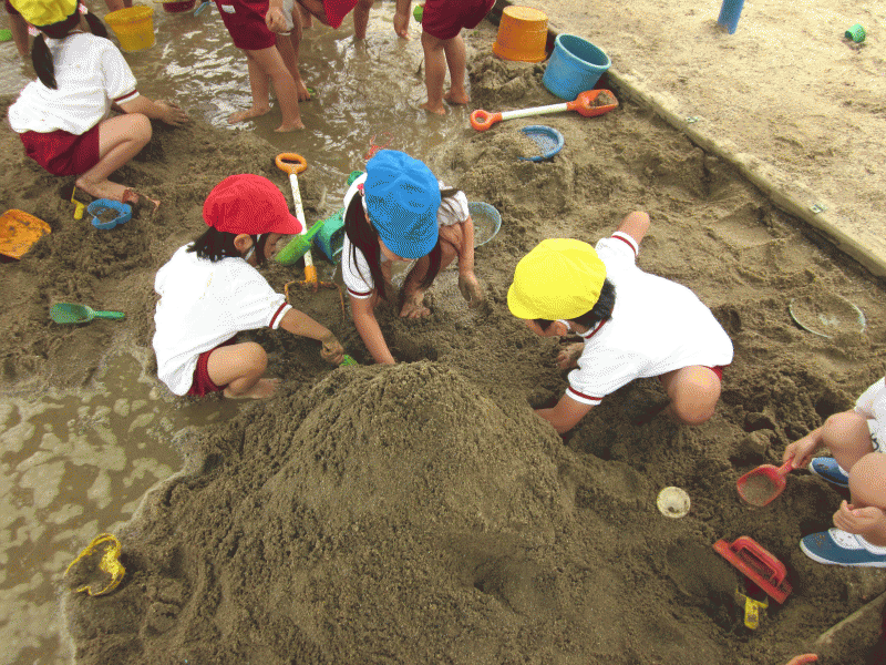 スコップや、バケツを片手にみんなどろんこ遊びに夢中になっていました♪