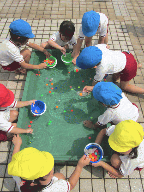 プールサイドでは太陽が照りつける中、スーパーボールすくいに夢中になっている子ども達☆