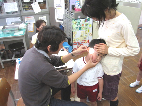 耳垢栓塞と診断されて、「耳アカね」と安心せず、その奥に中耳炎や外耳炎が起こっていることもあるそうです。担任よりお知らせが来ましたら、早めに医師の診断をお受け下さい。