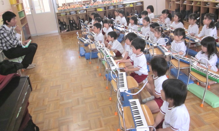ピアニカの正しい使い方を教えてもらったり、歌を歌いながらリズム遊びをしたり・・・